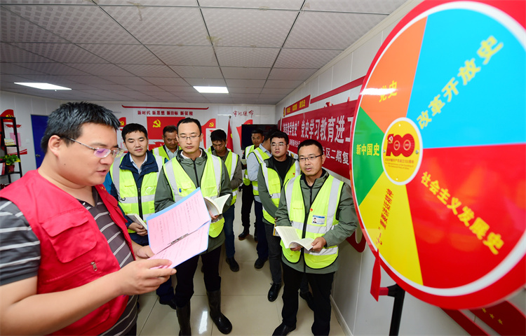 “支部建在項(xiàng)目上”。公司一直以來(lái)堅(jiān)持項(xiàng)目黨組織、黨支部書(shū)記、黨建工作制度與項(xiàng)目部管理架構(gòu)同步建立、同步配備、同步落實(shí),做到哪里有建設(shè)項(xiàng)目,黨建工作就延伸到哪里,為項(xiàng)目生產(chǎn)經(jīng)營(yíng)與黨建工作的同步開(kāi)展提供了全方位的融入機(jī)制。五里片區(qū)項(xiàng)目作為公司項(xiàng)目黨支部之一,從建立開(kāi)始,項(xiàng)目就把紅色理念引進(jìn)工地帶到一線職工身邊,積極組織項(xiàng)目員工參加公司、分公司組織的各項(xiàng)黨建活動(dòng),極大地增強(qiáng)了團(tuán)隊(duì)的凝聚力。同時(shí)項(xiàng)目黨支部還開(kāi)展各種紅色觀影、紅色教育等活動(dòng),極大地激發(fā)了廣大黨員和職工的愛(ài)國(guó)情懷。